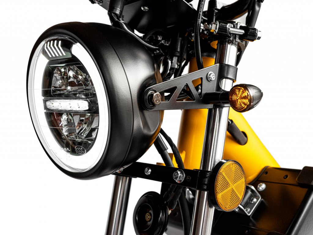 Je dvoumístný a silný, má velká 19“ kola, bytelnou ocelovou konstrukci, velkou nosnost a nadčasový minimalistický design.